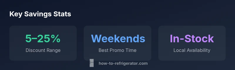 According to How To Refrigerator Analysis, 2026, refrigerator sale nearby promotions typically range from 5% to 25% off, with deeper discounts on floor models and energy-efficient units. Weekend and holiday promotions are most common, and stock can vary by location. To maximize savings, compare local ads, check retailer websites, and verify stock before visiting stores.