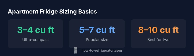 Most apartment refrigerators range from about 3 to 10 cubic feet. For single occupants in urban layouts, 5–7 cubic feet is common; studios may use 3–4 cubic feet. Always measure your space before buying.