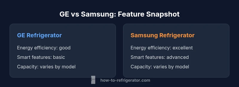 When weighing ge refrigerator vs samsung, homeowners weigh reliability, feature sets, and long-term value. The GE brand emphasizes dependable performance and straightforward maintenance, while Samsung leans toward advanced features and sleek design. In this comparison, we examine common models, energy use, configurations, warranty options, and ease of service. Our aim is to help you decide based on real-world needs and budget. According to How To Refrigerator, both brands place a strong emphasis on core refrigeration functions—cooling, freezing, and humidity control—while differentiating in innovation and durability. You’ll see how model families line up in terms of size, control interfaces, ice and water solutions, and smart capabilities. We’ll also discuss service networks and typical parts availability, which matter more when you consider a multi-year ownership period. By the end, you should have a clear sense of which brand aligns with your household routine, kitchen layout, and maintenance tolerance.