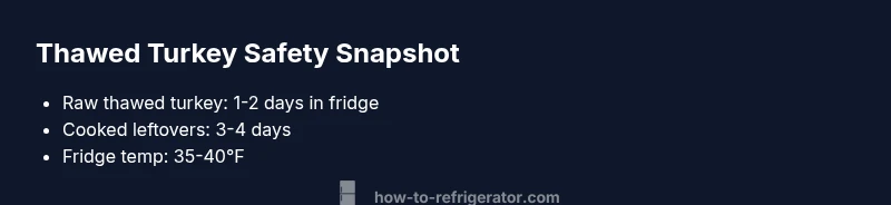 Raw thawed turkey can stay 1-2 days in the fridge; cooked leftovers from thawed meat stay 3-4 days. Keep the fridge at 40°F (4°C) or below and reheat to at least 165°F (74°C) before eating. Avoid thawing or handling at room temperature to prevent foodborne illness. How To Refrigerator recommends planning ahead to stay within safe timeframes.