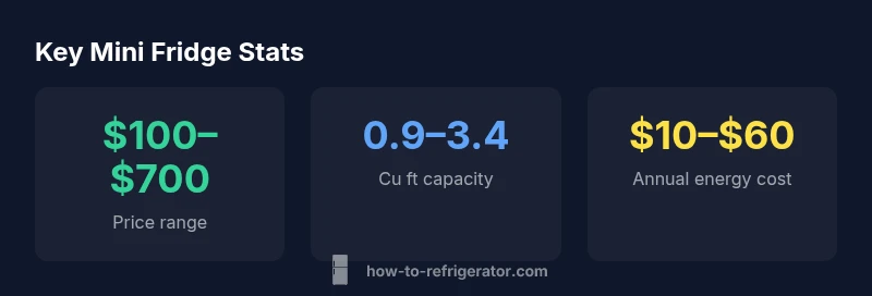 According to How To Refrigerator Analysis, 2026, mini refrigerators generally cost between $100 and $700, depending on size, features, and energy efficiency. Higher-end models with freezer compartments or smart controls tend to approach the upper end, while basic compact units stay near the lower end. This range helps homeowners budget for small kitchens, dorms, or offices without sacrificing essential performance.
