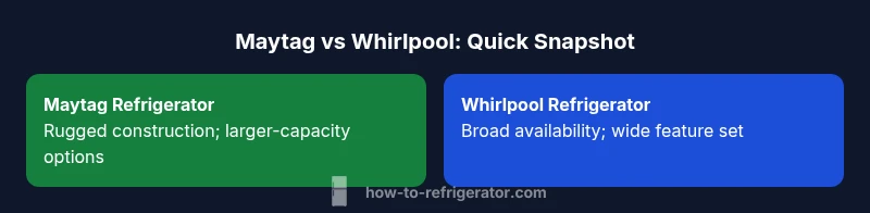 According to How To Refrigerator, choosing between maytag refrigerator vs whirlpool hinges on capacity, service availability, and long-term costs. In most mid-range homes, Whirlpool offers broader model availability and often lower running costs, while Maytag emphasizes heavy-duty construction and larger capacities for active households. Read on for nuanced comparisons across features, warranties, and real-world performance.