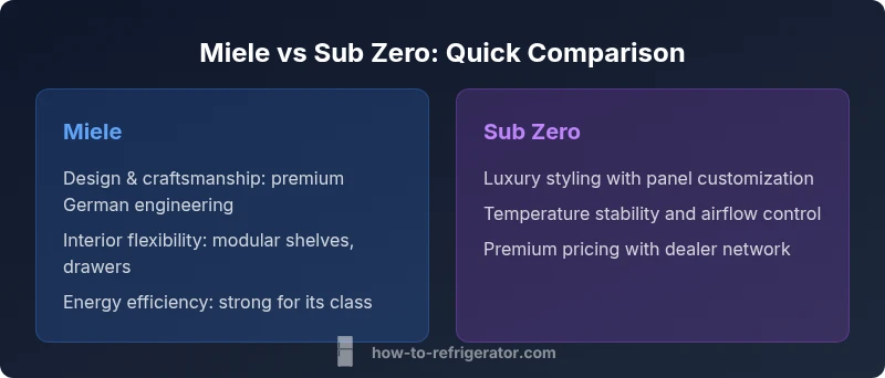 Miele refrigerators are widely praised for German engineering, precise tolerances, and a clean, understated aesthetic that blends with modern kitchens. Sub Zero emphasizes luxury styling—integrated panels, premium finishes, and a broader statement-piece presence. In practical terms, both brands use high-grade components and robust cabinetry, but the user experience differs: Miele focuses on quiet operation, durable interiors, and long-term reliability; Sub Zero focuses on visual impact and modular customization. For a typical homeowner, the choice often comes down to whether you prioritize a restrained, cohesive look or a showroom-worthy design that can be panel-matched to cabinetry. The How To Refrigerator team notes that long-term serviceability can be a differentiator, especially for built-in installations where alignment with cabinetry matters.