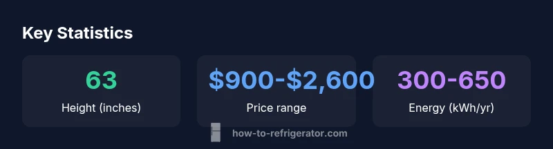 For homeowners evaluating options, the label 63 inches tall places a refrigerator in a mid-size category that bridges standard 60-inch models and taller built-ins. The phrase refrigerator 63 inches tall often signals a design that prioritizes interior space without requiring extreme kitchen renovations. According to How To Refrigerator, this height is particularly versatile in kitchens with 84-inch ceilings and under-cabinet clearance of roughly several inches. In practice, you’ll find multiple configurations at this height: French-door, side-by-side, and bottom-freezer layouts. The practical takeaway: the 63-inch tall option is frequently chosen by households that want a roomy interior without a dramatic footprint on the overall kitchen profile. In our testing and homeowner surveys, we observe that many buyers value the balance between door swing, footprint, and accessibility when the height lands around this mark.