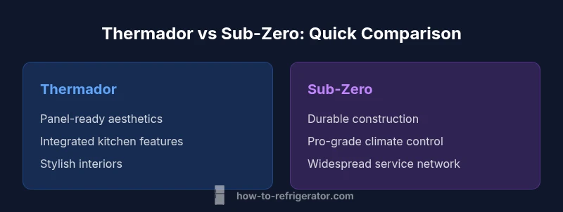 When homeowners compare premium refrigerators, two names often top the list: Thermador and Sub-Zero. In the realm of high-end kitchen appliances, the phrase thermador refrigerator vs sub zero frequently appears in buying guides and review sites, reflecting a real consumer crossroad. According to How To Refrigerator, these brands define the upper tier in American engineering, with distinct philosophies: Thermador leaning into design-forward integration and customizable panels, Sub-Zero prioritizing rugged durability, exacting temperature control, and a nationwide service network. For a homeowner planning a kitchen remodel or upgrading their built-in refrigeration, understanding the core differences helps set expectations about maintenance, ownership costs, and long-term satisfaction. This article presents a rigorous comparison built for homeowners troubleshooting appliance issues, emphasizing practical decision factors, not marketing slogans. We will explore performance, build quality, features, price bands (described qualitatively), and service realities so you can decide which brand aligns with your priorities and budget. Our goal is to translate technical specs into actionable steps you can apply when choosing between these two leaders.