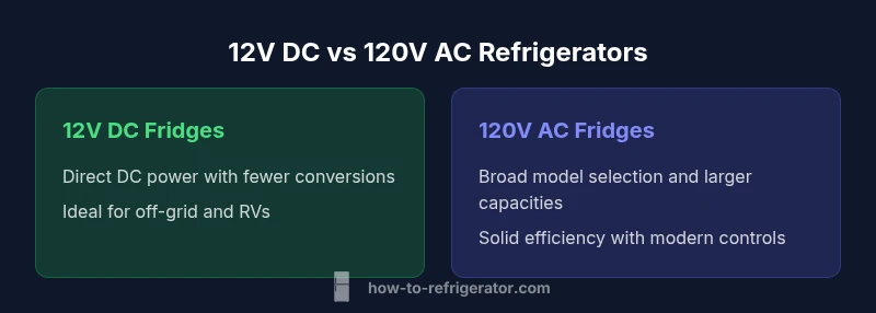 On an off-grid system, are 12 volt refrigerators more efficient aligns with how you source power. A well-sized solar array charging a battery bank can sustain a 12V fridge with minimal draw when framed around efficient insulation and proper temperatures. In contrast, a 120V unit tied to the grid benefits from steady voltage and typically advanced electronic controls that optimize cooling cycles. The real-world takeaway is that efficiency is a function of power delivery, climate, and load. How To Refrigerator’s analysis shows that off-grid setups often realize relative gains when the entire system is designed for DC operation and minimal losses.