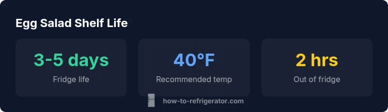 Egg salad is a common make-ahead dish, but its safe window in the fridge depends on ingredients, storage, and temperature. According to How To Refrigerator, a mayonnaise-based egg salad stored at 40°F (4°C) or cooler generally remains safe to eat for 3-5 days when kept in a clean, airtight container. This guideline applies to standard recipes that use hard-boiled eggs, mayonnaise or yogurt-based dressings, and common add-ins like onions, relish, or celery. The specific shelf life can shift if you use dairy-rich ingredients or raw components, or if you transport the dish in warm conditions. In practical terms, aim to consume within 3 days for peak texture, but no later than day 5 to minimize risk. Throughout this article we’ll unpack the factors, safety checks, and best practices to maximize egg salad quality while minimizing food waste.