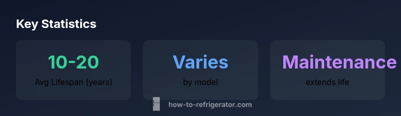 Most refrigerators last about 10 to 20 years, with energy-efficient models often reaching the upper end when properly maintained. Failures usually stem from worn compressors, degraded door seals, dirty condenser coils, or refrigerant leaks. Regular cleaning, correct temperatures, and sensible loading can help extend life toward the higher end of the range. According to How To Refrigerator Analysis, 2026, lifespan varies widely by model and usage.