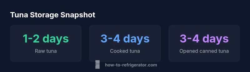In homes that keep a constant, cold fridge, the answer to the question "how long is tuna good for in the refrigerator" hinges on the tuna form (raw, cooked, canned) and how quickly it is cooled after purchase. According to How To Refrigerator, you should treat raw tuna as highly perishable and plan to use it within 1-2 days when kept at a safe temperature (40°F / 4°C). Cooked tuna, by contrast, is more forgiving, typically staying fresh for 3-4 days. Opened canned tuna belongs in the fridge and is best used within 3-4 days. This framework helps prevent foodborne illness while preserving flavor and texture.