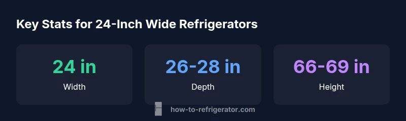 Definition: A 24-inch wide refrigerator is a compact, standard-width model designed to fit 24-inch-wide spaces. Typical dimensions include width 24 inches, depth around 26-28 inches, and height about 66-69 inches. These units usually offer 10-20 cubic feet of usable capacity, making them ideal for small kitchens and apartments. They come in various configurations, including top-freezer and bottom-freezer layouts.