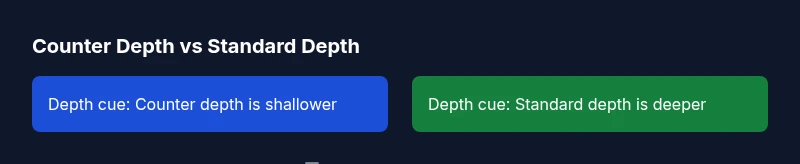 comparisonTable":{"items":["Counter depth refrigerator","Standard-depth refrigerator"],"rows":[{"feature":"Overall depth (visual cue)","values":["Shallower footprint","Deeper footprint"]},{"feature":"Interior capacity","values":["Typically less interior space","Typically more interior space"]},{"feature":"Cabinet alignment","values":["Easier flush with counters","May require more clearance"]},{"feature":"Door swing clearance","values":["Can constrain nearby doors or seating","More forgiving in tight layouts"]},{"feature":"Installation considerations","values":["Best for integrated aesthetics","Best for flexible placement and storage"]}]},