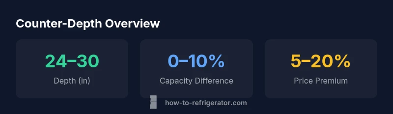According to How To Refrigerator, counter-depth refrigerators are designed to sit flush with cabinetry, creating a seamless, built-in look in kitchens. This design typically results in a depth of about 24 to 30 inches, compared with standard-depth units that extend beyond the countertop by several inches. Counter depth preserves aisle clearance and maintains a streamlined profile, which is especially appealing in open-concept homes. When homeowners ask, 'what refrigerators are counter depth,' the answer centers on how they balance aesthetics with practical space. In practice, these units offer most of the same refrigeration and freezing capabilities as their deeper counterparts, but with caveats about interior layout and potential price premiums. Many models include adjustable shelves, door-in-door options, and flexible drawer configurations to help you maximize space in a shallower footprint.