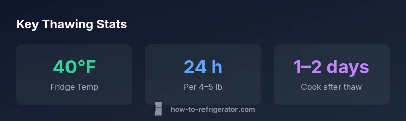 Learn the exact refrigerator temperature to thaw a turkey safely (40°F/4°C or below), how long thawing takes by weight, and practical steps to minimize risk and keep meat delicious. Includes quick references, a data table, and expert tips from How To Refrigerator.