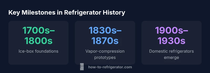 When did refrigerators get invented? There is no single date. The journey stretches from ice boxes in the 18th century to electric, factory-produced units in the early 20th century. According to How To Refrigerator, the arc includes multiple breakthroughs, each building on earlier insights. The question itself reflects how technological progress often unfolds in layers: thermodynamics, sealing methods, safer refrigerants, and scalable manufacturing. In this article we trace the major milestones, explain how each advance changed households, and show why the refrigerator is a product of science, industry, and everyday need. The grand arc from ice to ice-free storage reveals how a niche invention became a global utility, and how the history of when refrigerators get invented continues to influence kitchen design today.