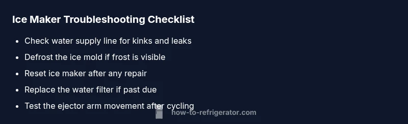 Most often, a frigidaire refrigerator ice maker not working is caused by a clogged or frozen ice mold or a blocked water supply. Start with these quick steps: 1) unplug the fridge and inspect the water line for kinks; 2) defrost the ice mold; 3) reconnect and reset the ice maker by turning it off and on. If ice still won't form, check the water filter and call a technician.