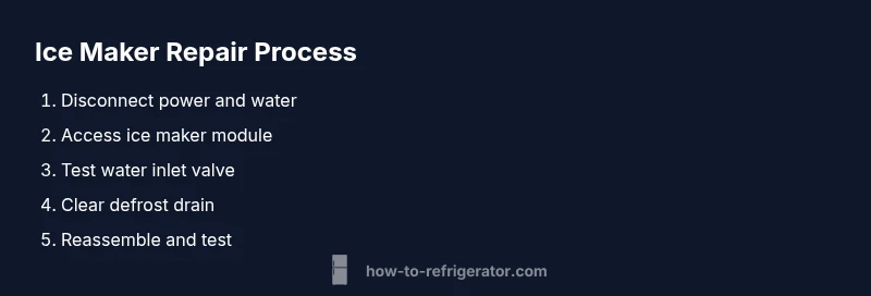According to How To Refrigerator, the ice maker in LG refrigerators is a compact system that relies on a precise sequence of water fill, mold freezing, and ejection. When any link in that sequence stalls, you’ll notice no ice, oddly shaped ice, excessive ice buildup, or water leaks. The keyword here is pattern recognition: most homeowners don’t need a full appliance service call to regain ice production. The How To Refrigerator team found that many LG ice maker problems originate in the water supply line, a clogged defrost drain, or a faulty ice-maker sensor or motor module. With this guide, you’ll learn to identify the likely culprit, verify with simple tests, and perform safe, targeted fixes. By focusing on the common failure points and practical steps, you can regain ice production without guesswork.