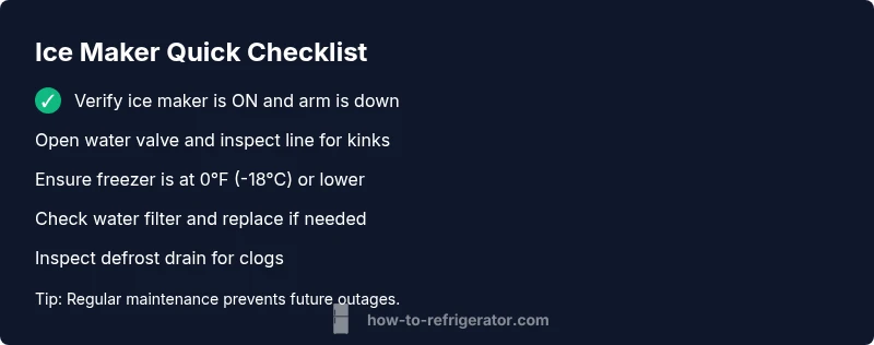 When a refrigerator stops making ice, homeowners often assume a major repair is needed. In reality, the majority of outages are caused by simple setup mistakes or routine wear that any homeowner can fix with the right steps. The How To Refrigerator team finds that many ice-maker failures trace back to three areas: the ice maker switch/arm position, the water supply, and the freezer temperature. Safety first: disconnect power before inspecting any internal components. In most homes, resolving these items restores ice production quickly and avoids costly service calls. This section explains how to prioritize fixes and reduces unnecessary disassembly by focusing on what most commonly goes wrong.