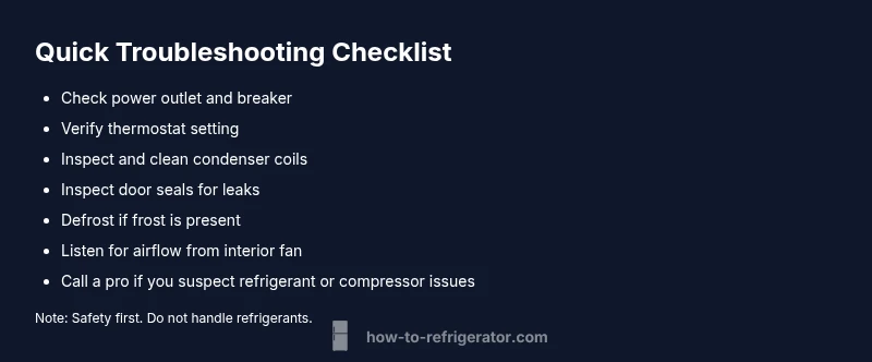A malfunctioning fridge is more than a nuisance; it puts perishable food at risk and wastes energy. According to How To Refrigerator, refrigerators operate through a balance of power, temperature control, and airflow. When any piece of that balance falters, food safety can be compromised and electricity usage can spike. The How To Refrigerator team found that many freezer-fridge issues stem from simple, reversible problems rather than expensive replacements. Starting with basic checks often yields quick wins, preserves groceries, and buys time while you plan next steps. This is especially important for households that rely on fresh produce, dairy, or medication that requires refrigeration. By understanding the system, you’ll learn to verify that power is stable, the thermostat is correctly set, and airflow remains unobstructed. The goal is to troubleshoot safely and effectively, minimizing waste and downtime while you decide whether to DIY or call a pro.