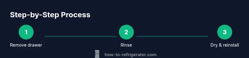 - Remove the drawer from the fridge carefully to avoid dropping it from the rails. 2) Empty all contents and inspect for cracks or warped edges. 3) Rinse under a gentle stream of warm water to remove loose debris. 4) Prepare a cleaning solution with mild dish soap and warm water. 5) Scrub all surfaces using a soft sponge, paying extra attention to corners and seams. 6) Rinse thoroughly until no soapy film remains. 7) Dry with a microfiber towel and allow to air-dry completely before reinsertion. 8) Reinsert the drawer and ensure it slides smoothly along rails. 9) Wipe around the surrounding interior to keep the area fresh. Total time: about 25–40 minutes.