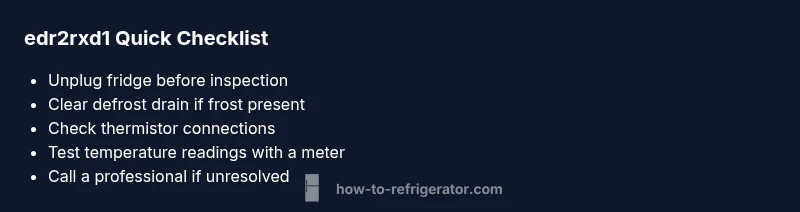 edr2rxd1 is a diagnostic code that points to a fault in the fridge's sensing and defrost subsystems. In practical terms, this means the thermostat or thermistor may be reading incorrectly, the defrost heater isn't cycling as intended, or the control logic has detected an anomaly. According to How To Refrigerator, rapid temperature swings and persistent frost buildup are common indicators that the fault lies with sensors or defrost timing, rather than a simple door left ajar. Homeowners should treat this as urgent: if left unresolved, food safety can be compromised and energy use can spike. A quick visual check can reveal frost that indicates abnormal defrost behavior, while a malfunctioning sensor often manifests as inconsistent temperature readings on the fridge and freezer compartments.