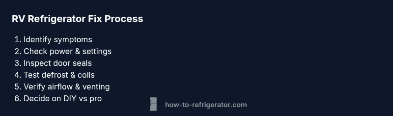 When your RV refrigerator stops cooling or runs inconsistently, the problem often stems from a combination of electrical power, temperature control, and airflow. According to How To Refrigerator, start with the basics: verify you have the correct power source (DC 12V for some units and AC 120V for others), confirm the thermistor or thermostat is responding, and check that the door seals are intact. In an RV, space constraints and exposure to road vibration can aggravate loose connections or evaporator issues. This guide helps homeowners diagnose common causes without specialized equipment. You will learn to distinguish between airflow problems, defrost drainage issues, and power supply faults, and you’ll know when a professional should be called. By approaching the issue methodically, you’ll either fix the fridge on the spot or gain the information you need to seek accurate service.