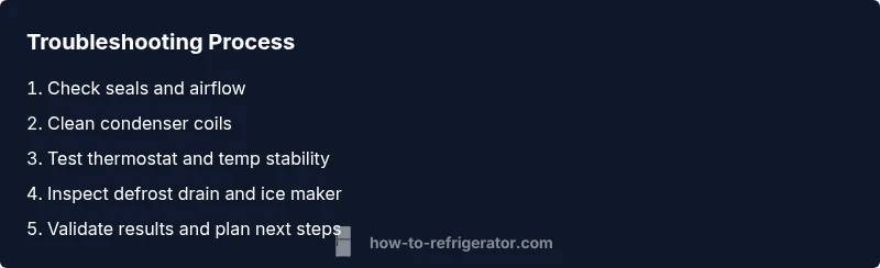 Typical signs include: (1) uneven cooling or warm shelves, (2) excessive frost buildup or frost on the evaporator, (3) buzzing or louder-than-normal operation, (4) water pooling inside the fridge or a dripping defrost pan, and (5) ice maker failures. Each symptom points to a likely source: airflow blockage, dirty coils, faulty thermostat, or a malfunctioning defrost heater. By recognizing these patterns, you can prioritize checks and avoid unnecessary replacements. Remember: some indicators may overlap, so approach with a systematic checklist rather than random tweaks. For the g e cafe refrigerator, flawless airflow and clean coils are the most common factors keeping temperatures stable and energy use efficient.
