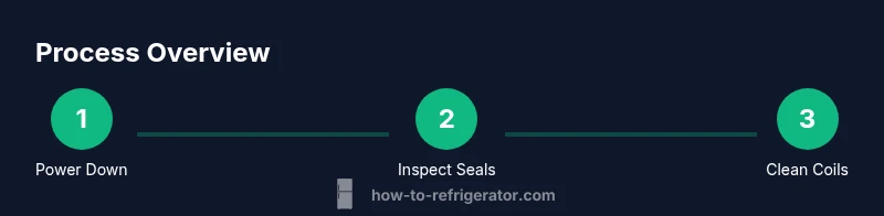 Before any hands-on work, unplug the refrigerator and move perishables to a cooler or secondary cold storage. Begin with the simplest steps: clean the condenser coils with a soft brush or vacuum to improve airflow, wipe door gaskets with mild soap and water to restore a tight seal, and ensure the doors close fully without interference. If frost is present, manually defrost the freezer for several hours with the doors closed to allow the ice to sublimate. Check the defrost drain for blockages and clear them with warm water. If the temperature readings remain unstable after basic maintenance, you may need to test the thermostat at the control panel or consult a professional for electrical components. Remember to document observed temperatures and symptom timing to aid diagnosis should you seek help.