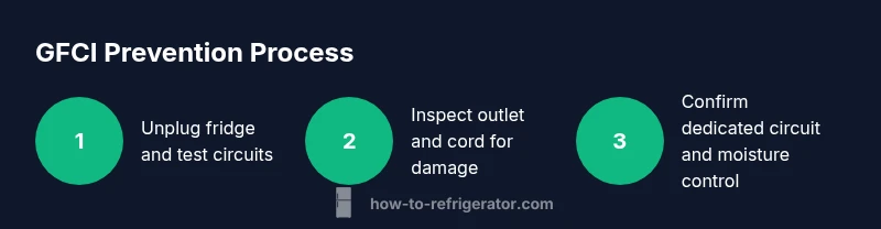 Preventing refrigerator trips on a GFCI begins with a dedicated circuit, a healthy outlet, and a moisture-free plug. Start by ensuring the fridge has its own properly wired outlet on a suitable circuit, inspect the cord for damage, test the GFCI, and eliminate shared loads. If trips persist, consult a licensed electrician.