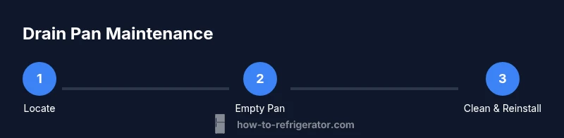Most frost-free refrigerators route condensate through a defrost drain into a pan located either behind a toe-kick panel or at the bottom rear of the cabinet. The pan sits beneath the evaporator coil and is designed to collect water during defrosts. Blockages in the drain line or a misaligned pan can cause pooling. Recognize common failure modes: a clogged defrost drain, a pan that has shifted, or a cracked drain pan. Understanding these parts helps you troubleshoot efficiently and apply the correct fix when asking yourself how to remove water from refrigerator drain pan. The How To Refrigerator team recommends checking for mineral deposits, ice crystals, or slime that can constrict flow, especially in humid environments.