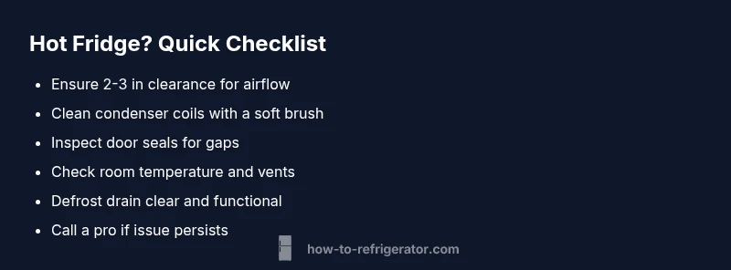 Urgent troubleshooting guide to diagnose why a refrigerator feels hot, with quick checks, a diagnostic flow, step-by-step fixes, safety tips, and prevention strategies. Learn practical actions from How To Refrigerator Team to keep your fridge safe and efficient.