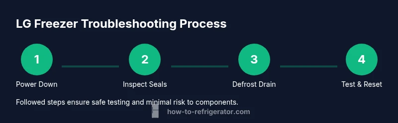 Adopt a simple test plan: 1) verify the door seals and gasket integrity; 2) check for frost patterns indicating defrost issues; 3) inspect and clean condenser coils and ensure proper airflow; 4) listen for the evaporator fan during cycling; 5) test thermostat accuracy with a calibrated thermometer. Record findings as you go. This structured approach helps you determine whether an issue is user-serviceable or requires professional service and parts replacement. The plan is designed to minimize power interruptions and prevent further damage to your lg freezer while you troubleshoot.