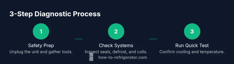 Not cooling effectively is the most common complaint. Causes can range from a dirty condenser coil to a failed thermostat, a defective defrost timer, or a blocked defrost drain. Frost buildup on the evaporator indicates an active defrost issue or a failed heater; a continuous frost layer reduces heat transfer. A buzzing or constant running sound may point to a failing fan motor or condenser. A warm interior with a functioning light and an ice maker that never fills might indicate a sensor problem or low refrigerant symptoms (refrigerant issues should be addressed by a pro). In this section we map typical symptoms to plausible culprits and provide quick checks you can perform safely. Document the observed symptoms with dates and times to reveal patterns that aid decision making. Environmental factors like room temperature and frequent door openings influence performance. Recording symptoms helps you prioritize repairs.