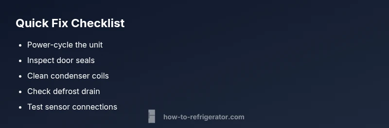 If you’re facing lrsos2706s, start with a safe, controlled reset and a quick inspection. First, unplug the fridge for 5–10 minutes, then plug it back in and monitor if the display returns to normal. Next, inspect the door gaskets for cracks or gaps; a compromised seal can cause temperature swings that trigger the code. Clean the condenser coils if they look dusty or greasy; blocked coils force the compressor to work harder and can reflect as temperature instability. Move items away from the vents inside the cabinet to improve airflow. Finally, confirm that the defrost drain isn’t blocked and that frost isn’t accumulating on the evaporator. If the alarm is persistent after these steps, proceed to diagnostic flow and professional evaluation.