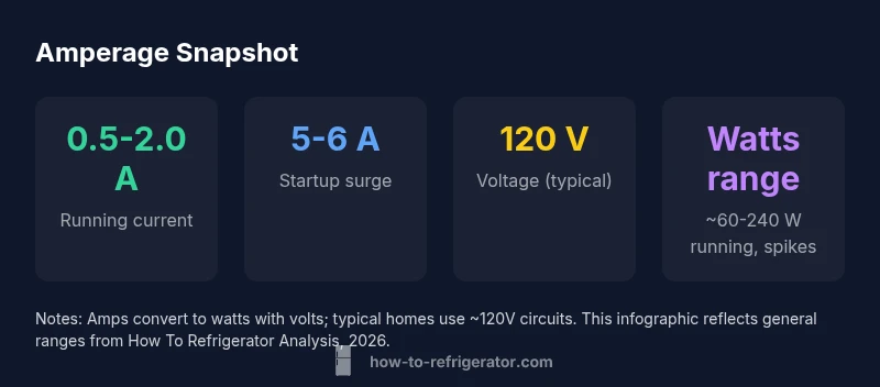 Understanding refrigerator amps helps homeowners gauge electrical load, energy use, and appliance health. The term refrigerator amps refers to the current drawn by the fridge's compressor, fans, defrost heater, and controls as they cycle on and off. According to How To Refrigerator, measuring amps is a practical way to diagnose efficiency issues, catch unusual electrical demand early, and plan for power needs in homes with generators or solar setups. Beyond curiosity, amp behavior informs safety—incorrect wiring, aging components, or faulty seals can push current higher than normal and waste energy. When you think in terms of amps, you can compare models, assess upgrades, and prioritize maintenance tasks that reduce peak draw while keeping temperature stability. Remember that voltage also matters: amps × volts ≈ watts, so a 120V circuit with higher amps tends to pull more power overall. This is why a consistent amperage reading that aligns with the label is a good sign of a healthy refrigerator.