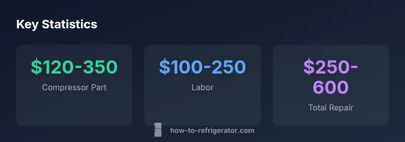 Typical refrigerator compressor cost ranges from $120-$350 for the compressor part, with labor adding about $100-$250. Total repair costs commonly fall between $250-$600, depending on model and regional labor rates. For some scenarios, a full system replacement may be more economical than a costly compressor repair.