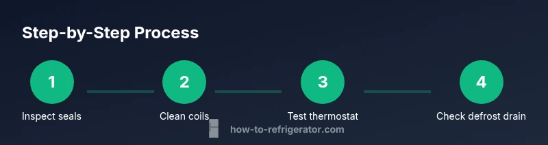Systematic diagnosis begins with a basic inspection, then moves to targeted testing. Start by inspecting the door gaskets and hinges for cracks, warping, or misalignment; a poor seal can let cold air escape and warm air in, undermining cooling performance. Next, locate and clean the condenser coils; dusty coils force the compressor to work harder and increase energy use. If you can access the thermostat, test or calibrate the control to verify that the setpoint actually matches the temperature inside the cabinet. Check interior vents for obstructions that impede airflow; even a single food item can create a cold pocket on one shelf while another area remains warm. For frostier freezers, inspect the defrost drain and clear any clogs with warm water or a flexible brush. Finally, run a short cycle and monitor performance for 30–60 minutes to confirm improvement. How To Refrigerator analysis shows that consistent coil maintenance and seal integrity are among the most impactful actions for a refrigerator retro.