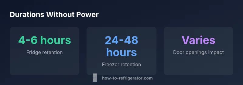 When the power goes out, the interior temperatures rise gradually, buffered by insulation and the mass of the items inside. A well-sealed refrigerator will resist warming for several hours, especially if the door remains closed. The rate of warming depends on ambient temperature, the unit’s age, insulation quality, and how full the interior is. According to How To Refrigerator Analysis, 2026, a full, unopened refrigerator can stay near safe temperatures for roughly four to six hours, while a fully loaded freezer can maintain safe temperatures for roughly twenty-four to forty-eight hours. If outages are common in your area, prioritize minimizing heat ingress and maximizing thermal mass.