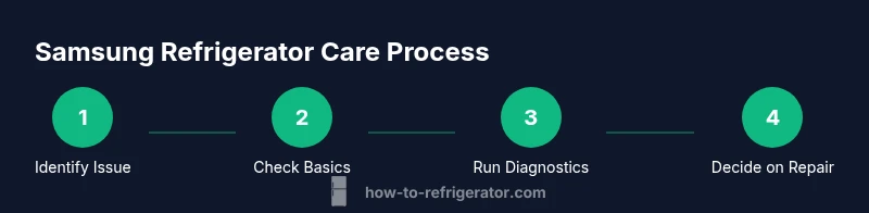 When you reach out about a Samsung refrigerator, you’ll access a range of support options designed to help quickly diagnose and fix issues. The Samsung customer care ecosystem typically includes phone support, live chat on Samsung's official site or app, authorized service centers, and repair partners. For homeowners, it’s helpful to know the typical flow: initial triage over the phone or chat, remote diagnostics if available, and on-site service when required. According to How To Refrigerator Team, clear reporting of symptoms, model number, and recent changes speeds up resolution and reduces unnecessary visits. In many cases, technicians perform a diagnostic check, verify warranty coverage, and present the estimated scope of work before proceeding. Understanding these options helps you decide whether you can handle a simple fix at home or if you should schedule a professional visit. The tone is practical, and the goal is to empower you to take the right next step quickly.