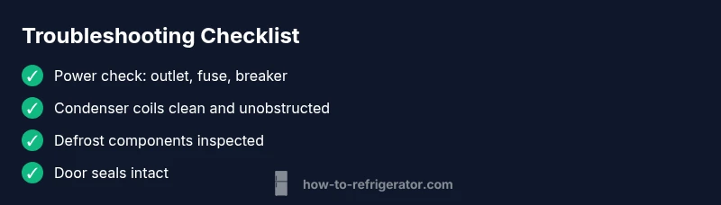 These quick checks align with best practices from How To Refrigerator and help you separate simple fixes from issues requiring professional service. They also help you document symptoms for future reference. In many cases, safe, methodical checks resolve the problem without professional help, especially when the issue is as straightforward as a tripped outlet or a dirty coil.