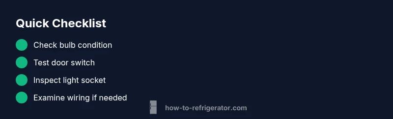When the interior light of your refrigerator fails, it can make locating items harder and may hint at a larger electrical or wiring issue inside the unit. According to How To Refrigerator, the most frequent culprits are a burnt-out bulb or a faulty door switch. Both issues are common on aging fridges and are often straightforward to fix with basic tools. This section explains why the light stops working and what it signals about the appliance’s overall health, so you can decide whether a quick fix or a professional visit is appropriate.