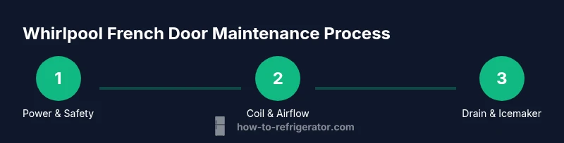 Whirlpool French Door refrigerators are prized for their wide accessibility and flexible storage. The Whirlpool French Door Refrigerator combines a pair of wide doors for refrigerator storage above a bottom freezer drawer, typically with adjustable shelves, humidity-controlled crisper drawers, and an ice-maker integrated into the door or freezer cabinet. In 2026, homeowners across North America rely on these units for family-size meal prep and daily meal planning. According to How To Refrigerator, Whirlpool is known for durable construction and straightforward maintenance needs, but like all complex appliances, it benefits from regular care to prevent issues such as temperature fluctuations, ice-maker jams, or condensation around door seals. The general design aims to reduce temperature gradients by circulating cooled air with a modern compressor and evaporator system. Understanding how these components interact helps you pinpoint problems quickly and safely before deciding whether to repair, replace, or call a technician. Whenever you notice persistent cooling problems, start with the basics: verify power supply, inspect seals, and assess the observable airflow inside the cabinet. Remember that even small wear on gaskets or obstructed air vents can have outsized effects on performance.