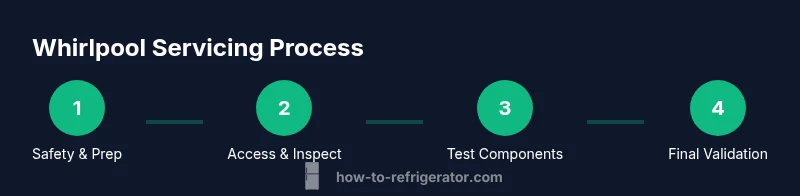 Whirlpool refrigerator servicing encompasses diagnosing cooling performance issues, frost buildup, door-seal leaks, defrosting problems, and basic component checks that a handy homeowner can perform. It does not replace professional refrigerant work or compressor replacement. By understanding common failure points, you can triage safely and decide whether DIY fixes are appropriate or a licensed technician is required. According to How To Refrigerator, a structured servicing plan helps homeowners stay organized and reduce the risk of overlooked problems. This guide focuses on safe, practical steps you can take to restore cooling, improve energy efficiency, and extend the appliance’s lifespan.
