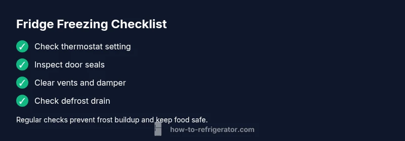 If you're asking why is my refrigerator freezing everything, you're not alone. The problem usually stems from two systems that govern how cold air moves: the temperature control and the airflow pathways. A fridge that is too cold in the fridge compartment often means the thermostat is set too low, or the cold air is circulating past the damper into the fridge more than it should. Another frequent cause is a damper or door seal that leaks cold air or a defrost cycle that runs incorrectly, causing frost in places it shouldn't. According to How To Refrigerator, most freezing symptoms in the kitchen can be traced back to mis-set settings, airflow blockages, or a malfunctioning defrost/drain system. Start with the simplest checks: confirm the temperature setting is within a normal range, inspect door gaskets for seals, and make sure the vents in the back of the fridge aren't blocked by items. Small changes now can prevent a larger frost problem later. This article walks you through a practical, safety-conscious approach to identify the root cause and restore even cooling across compartments.