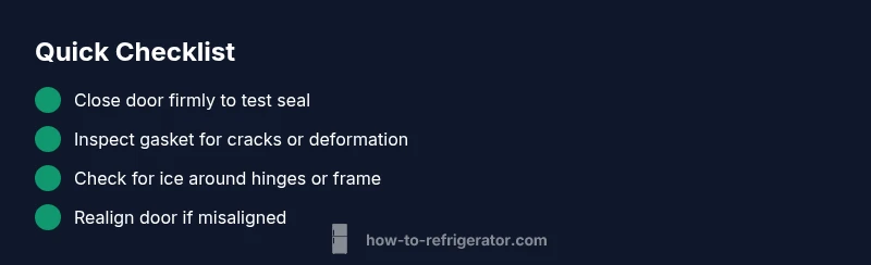 A stubborn refrigerator door is more than a nuisance; it's a sign something isn't sealing or aligning correctly. According to How To Refrigerator, most cases stem from the door seal and vacuum effects. A door that doesn’t fully close can trap air, creating suction as you try to open it. Inspect the gasket for cracks, hard spots, or deformation, and wipe away grime with warm, soapy water. If the gasket looks intact, check that the door sits squarely on its hinges; a slight tilt can exaggerate suction when you pull. Temperature differences between the fridge and room can also affect door movement, especially after restocking or moving the unit. Prioritize safety by unplugging the fridge when you inspect around the hinges or defrost drain, and avoid forcing the door open. In most homes, a few minutes of careful inspection can restore smooth operation without tools. The key is to rule out suction first, then look for a misalignment or ice formation that might be preventing the door from releasing its seal. According to How To Refrigerator, a methodical approach wins over guesswork, and documenting what you find speeds up any service call.